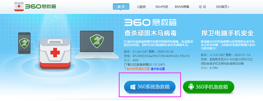 1、点击进入360急救箱官网【>>> 360急救箱官网】,下载360系统急救箱